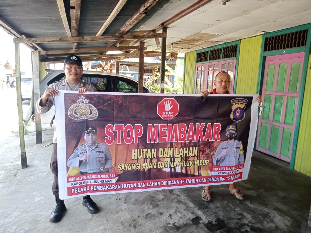 Polres Gunung Mas – Dalam upaya mengantisipasi kebakaran hutan dan lahan (Karhutla), Anggota Polsek Manuhing jajaran Polres Gunung Mas (Gumas) Polda Kalteng melaksanakan sosialisasi tentang larangan membakar Hutan dan Lahan berikut sanksi hukumnya kepada warga masyarakat Kel. Tumbang Talaken di Kec. Manuhing Kab. Gumas, Kalteng. Rabu (30/8/2023) pagi.