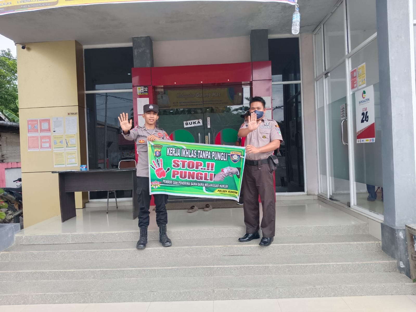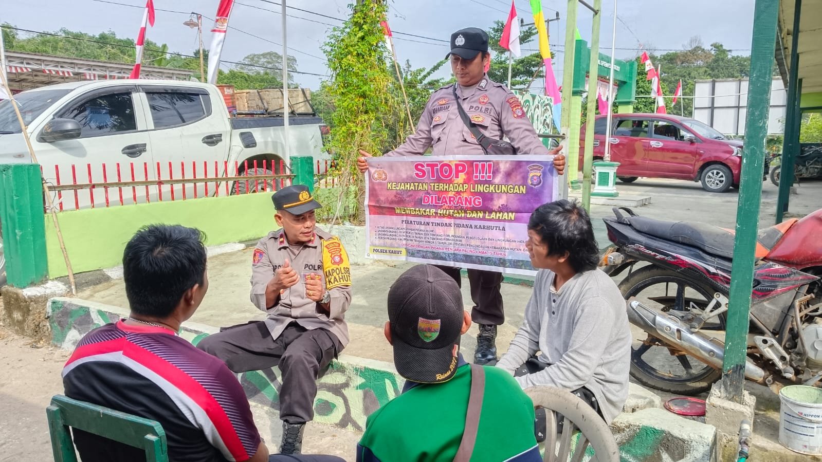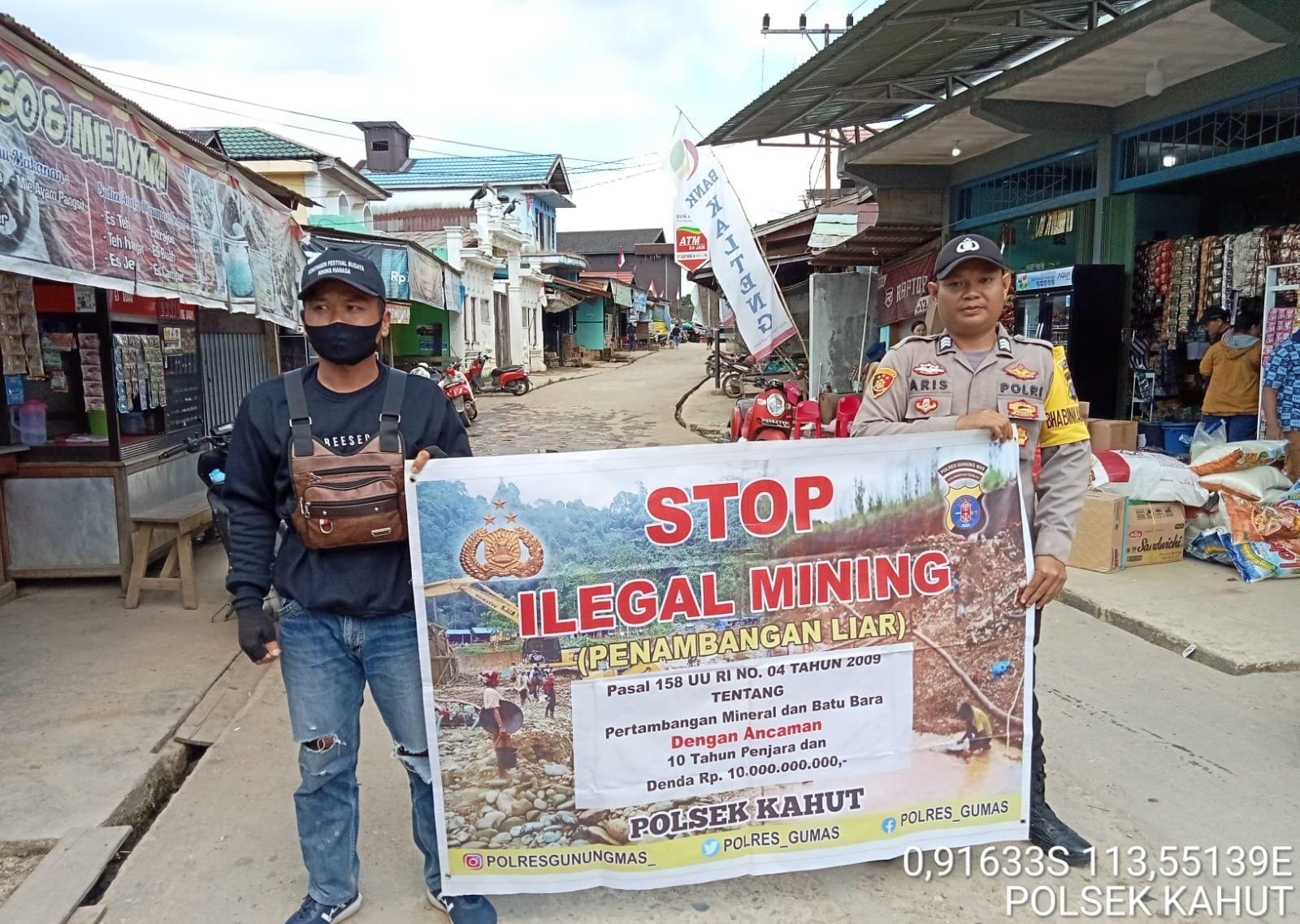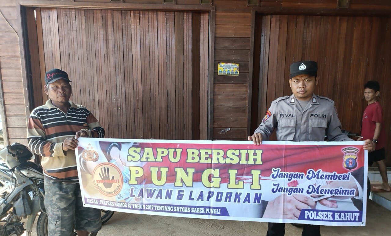 Kapolsek Kahut Ipda Supono menyampaikan himbauan melalui personel Polsek Kahut kepada masyarakat agar tetap memperhatikan Debit air.