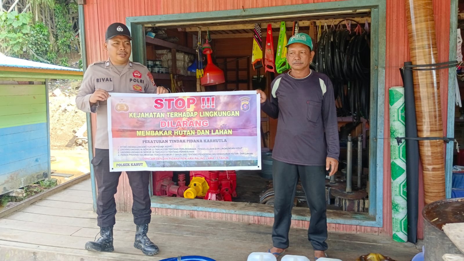 “Kami mensosialisasikan pencegahan karhutla yang berisikan larangan dan sanksi pidana bagi pelaku pembakaran hutan dan lahan kepada masyarakat agar diimplementasikan dan diketahui,” terang kapolsek.