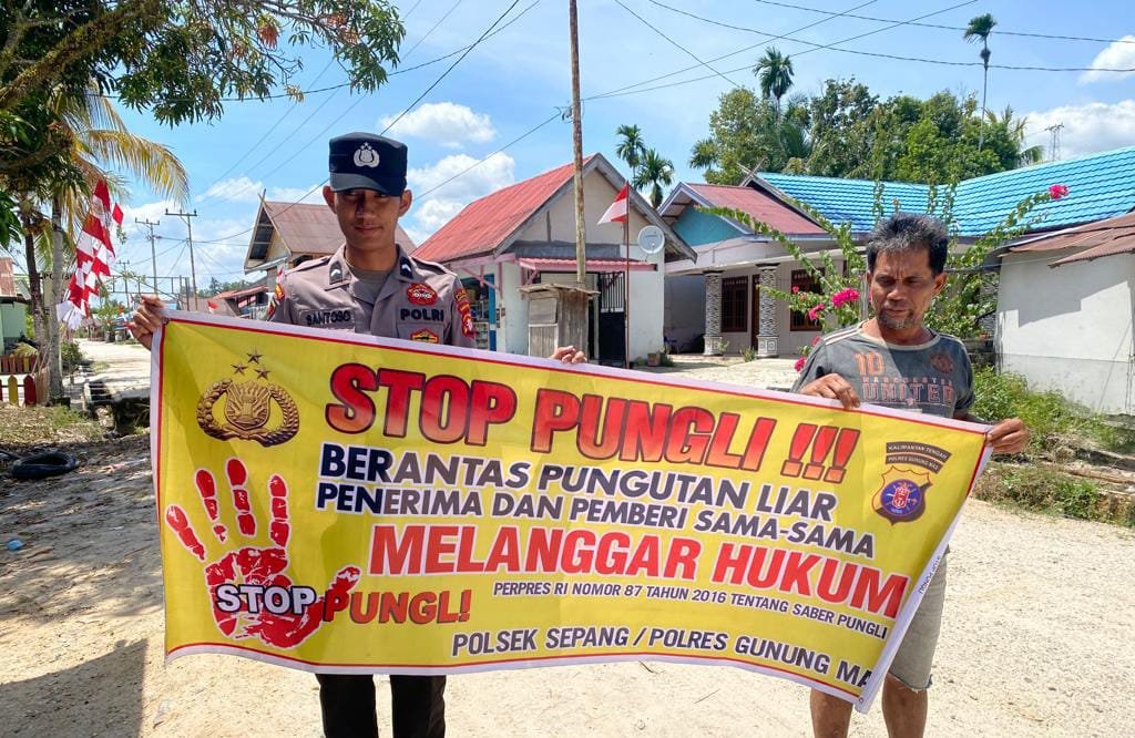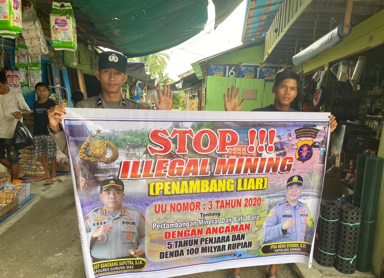 Polres Gunung Mas – Dalam upaya mengantisipasi kebakaran hutan dan lahan (Karhutla), Anggota Polsek Manuhing jajaran Polres Gunung Mas (Gumas) Polda Kalteng melaksanakan sosialisasi tentang larangan membakar Hutan dan Lahan melalui tebar spanduk berikut sanksi hukumnya kepada warga masyarakat Kel. Tumbang Talaken di Kec. Manuhing Kab. Gumas, Kalteng.Minggu (03/09/2023) pagi.