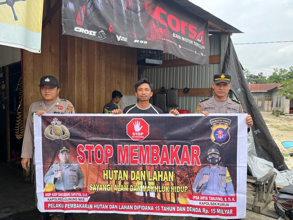 Polres Gunung Mas – Personel Polsek Rungan jajaran Polres Gunung Mas (Gumas) Polda Kalteng dalam aksi mencegah Kebakaran Hutan dan lahan gencarkan lakukan Patroli dan sosialisasi serta memberi himbauan kepada masyarakat tentang larangan dan bahaya membakar hutan dan lahan. Sabtu, (2/9/2023) Siang.