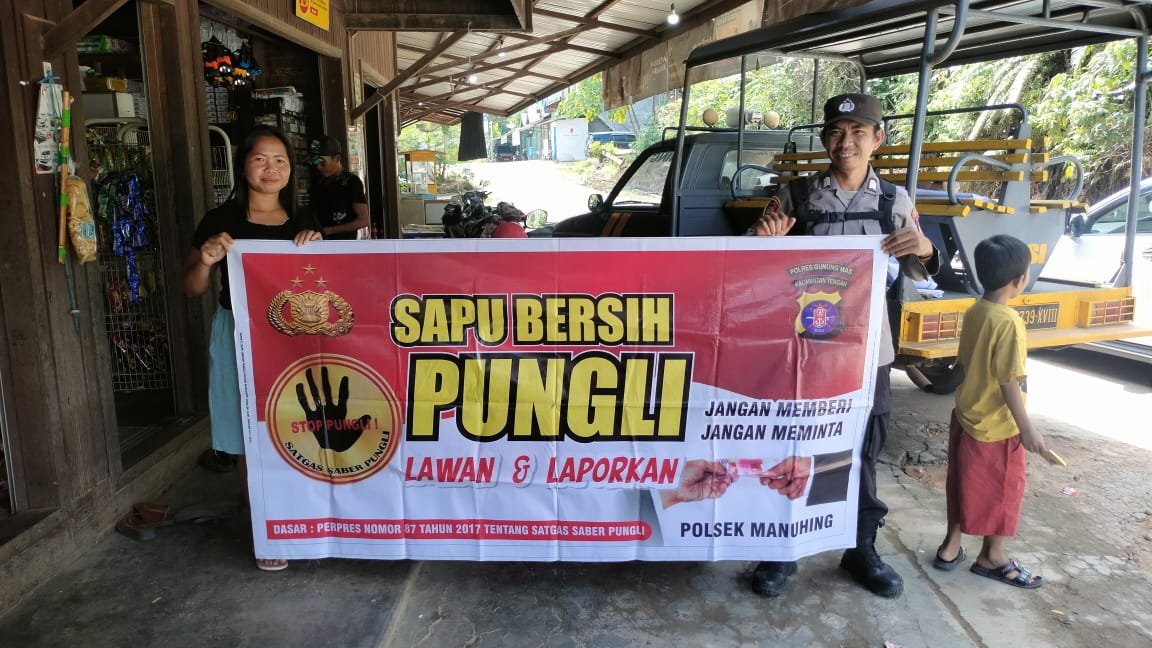 Dalam giat Sosialisasi Tim Saber Pungli yang dilaksanakam oleh personil polsek manuhing menyampaikan agar seluruh masyarakat mewaspadai pungutan liar yang dilakukan oleh oknum tidak bertanggung jawab dengan berbagai macam cara.