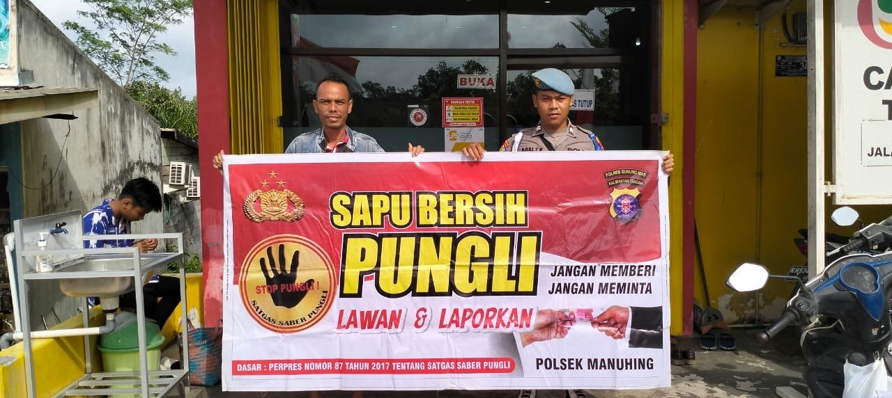 Dala hal ini Polsek kahut membentangkan Spanduk Yang Bertuliskan Stop Pungli, Pemberi dan Penerima sama – sama melanggar hukum, apabila ada pungli laporkan segera.