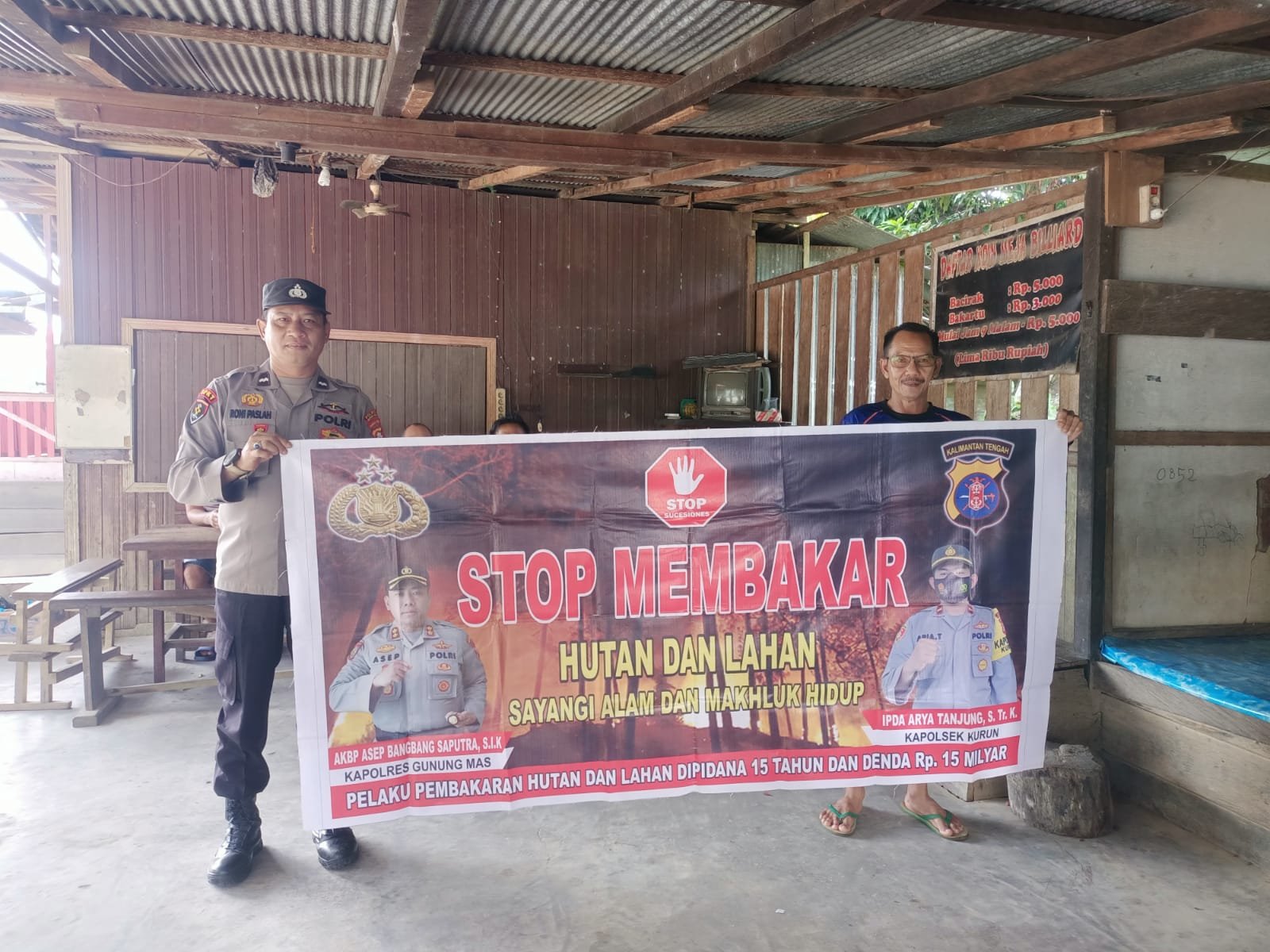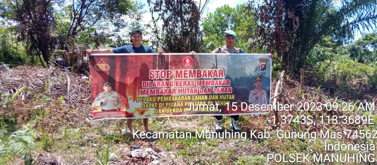 Polres Gunung Mas – Jajaran Polsek Kurun, Polres Gunung Mas (Gumas) melakukan patroli dan sosialisasi serta memberi imbauan kepada masyarakat tentang larangan dan bahaya membakar hutan dan lahan (Karhutla). Jum’at, (15/12/2023) siang.