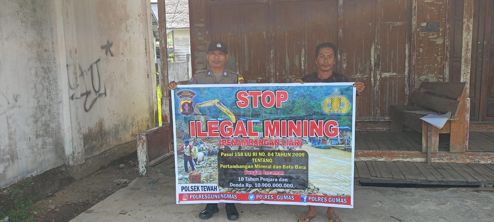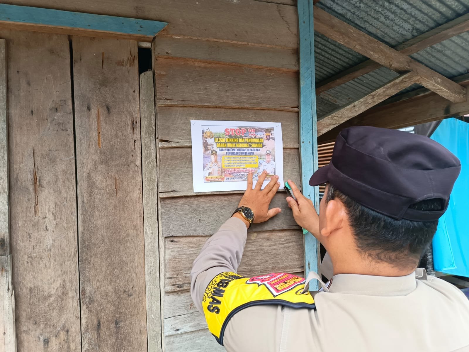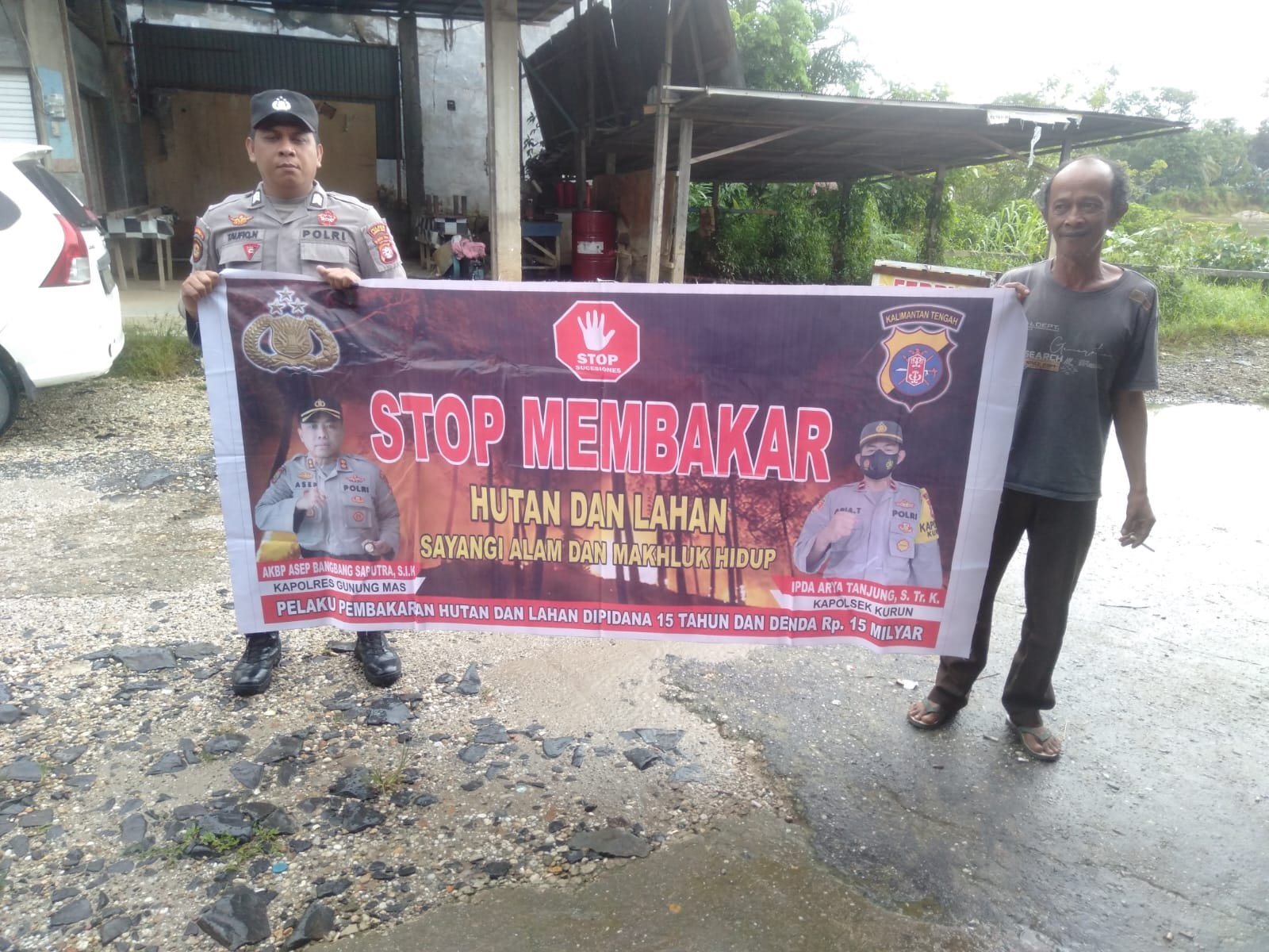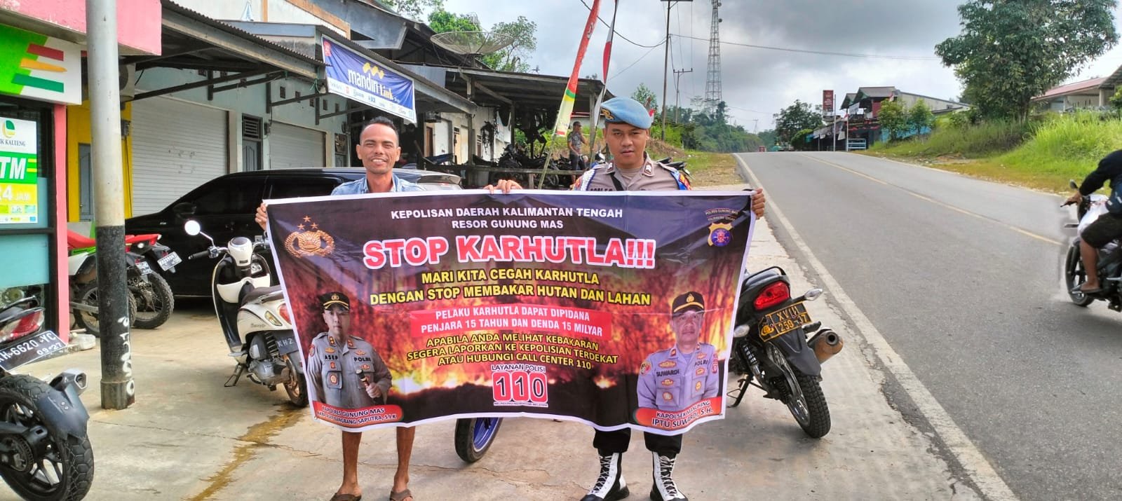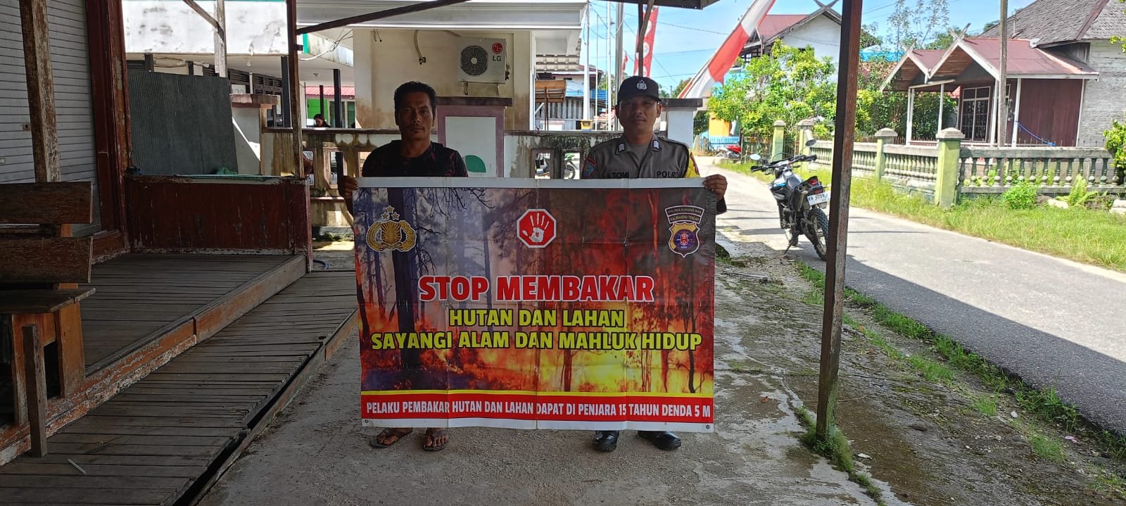 Dalam kesempatan ini personel Polsek Manuhing memasang maklumat Polda Kalteng yang berisikan tentang pencegahan Karhutla yang berisikan larangan dan sanksi pidana bagi pelaku pembakar hutan dan lahan kepada masyarakat agar diimplementasikan dan diketahui.