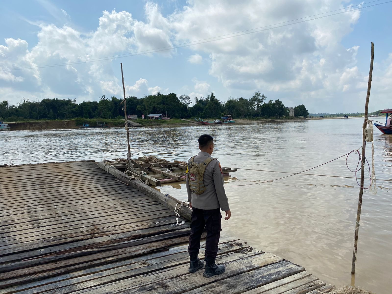 Personel Polsek Tewah melaksanakan patroli pantau debit air sungai Kahayan guna mencegah terjadinya korban dampak dari bencana alam banjir dan memberi himbauan kepada masyarakat.