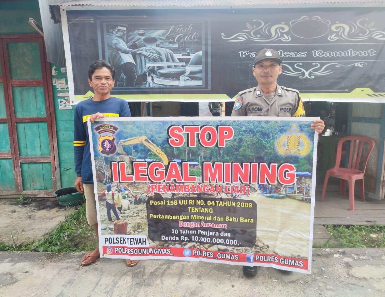 Kapolsek Tewah Iptu Ahmad Januar Ganari, S.Tr.K., menyampaikan himbauan melalui personel Polsek tewah kepada masyarakat agar tetap memperhatikan Debit air.