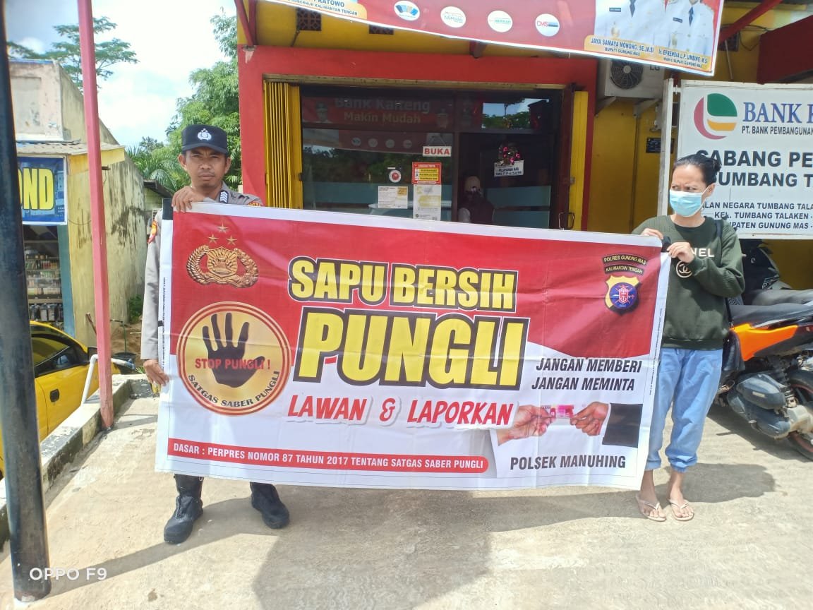 Dalam kesempatan ini personel Polsek Manuhing memasang maklumat Polda Kalteng yang berisikan tentang pencegahan Karhutla yang berisikan larangan dan sanksi pidana bagi pelaku pembakar hutan dan lahan kepada masyarakat agar diimplementasikan dan diketahui.