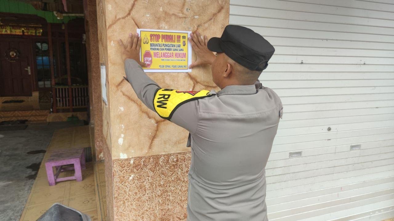 Polres Gunung Mas – Personel Polsek Rungan, Polda Kalteng, Gunung Mas, Kalimantan Tengah, mengedukasi kepada masyarakat setempat tentang bahaya pungutan liar. Langkah ini dilakukan sebagai upaya keras untuk memerangi praktik ilegal ini dan memberikan informasi kepada masyarakat mengenai hak-hak mereka serta konsekuensi hukum yang terkait dengan pungutan liar. Rabu (21/2/24) sekira pukul 11.00 WIB.