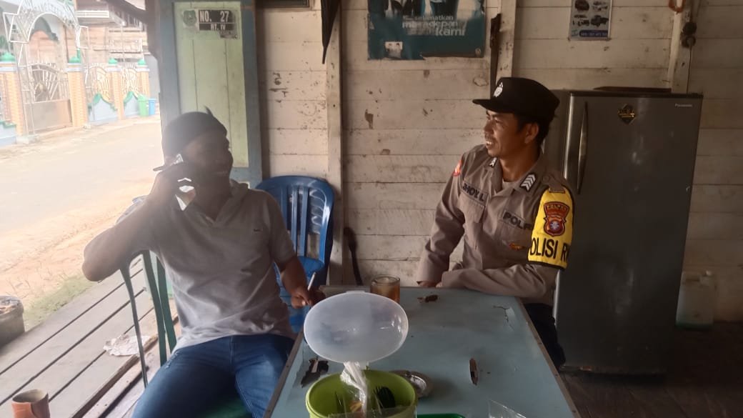 Polres Gunung Mas – Personel Polsek Sepang, Polda Kalteng, Gunung Mas, Kalimantan Tengah, mengedukasi kepada masyarakat setempat tentang bahaya pungutan liar. Langkah ini dilakukan sebagai upaya keras untuk memerangi praktik ilegal ini dan memberikan informasi kepada masyarakat mengenai hak-hak mereka serta konsekuensi hukum yang terkait dengan pungutan liar. Minggu (14/01/24) sekira pukul 11.00 WIB.