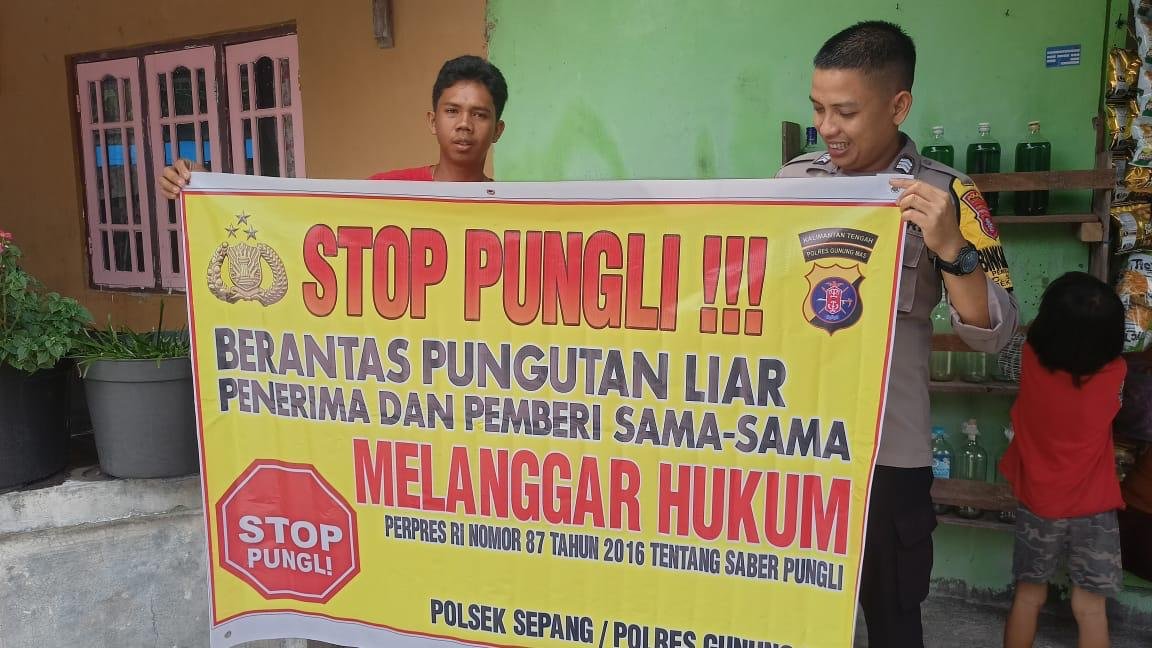 Polres Gunung Mas – Personel Polsek Kahayan Hulu Utara (Polsek Kahut), Polda Kalteng, Gunung Mas, Kalimantan Tengah, mengedukasi kepada masyarakat setempat tentang bahaya pungutan liar. Langkah ini dilakukan sebagai upaya keras untuk memerangi praktik ilegal ini dan memberikan informasi kepada masyarakat mengenai hak-hak mereka serta konsekuensi hukum yang terkait dengan pungutan liar. Selasa (10/01/24) sekira pukul 11.00 WIB.