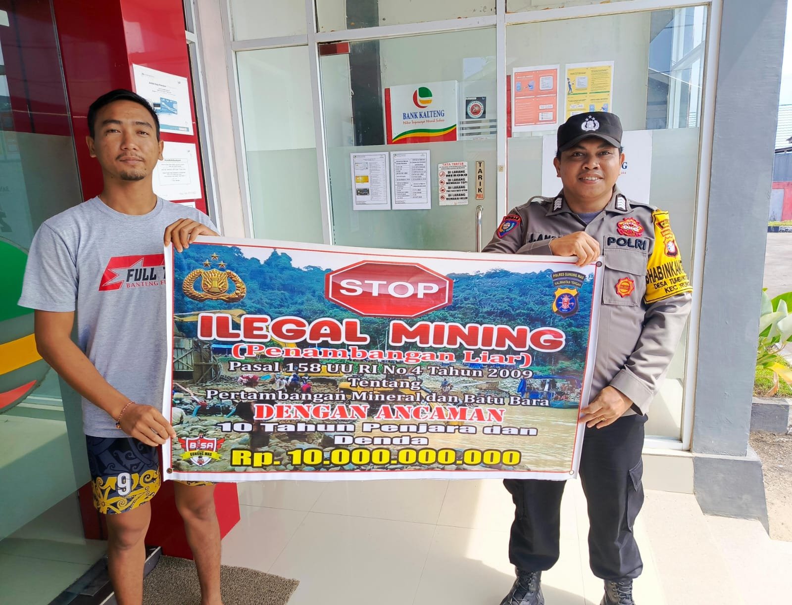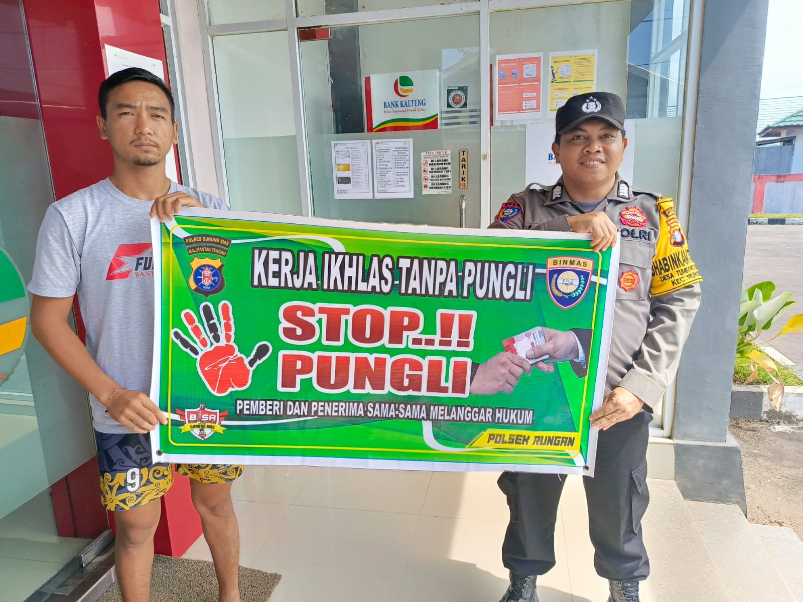 Polres Gunung Mas – Personel Polsek Tewah, Polda Kalteng, Gunung Mas, Kalimantan Tengah, mengedukasi kepada masyarakat setempat tentang bahaya pungutan liar. Langkah ini dilakukan sebagai upaya keras untuk memerangi praktik ilegal ini dan memberikan informasi kepada masyarakat mengenai hak-hak mereka serta konsekuensi hukum yang terkait dengan pungutan liar. Jumat (05/01/24) sekira pukul 11.00 WIB.