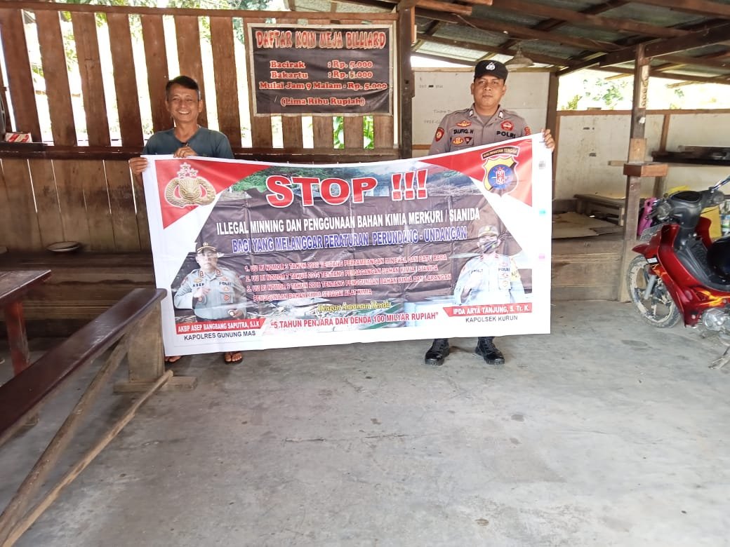Polres Gunung Mas – Polsek Manuhing, Polda Kalteng, Gunung Mas, Kalimantan Tengah, terus meningkatkan upaya sosialisasi untuk menginformasikan masyarakat tentang bahaya lingkungan yang ditimbulkan oleh aktivitas tambang ilegal. Rabu (03/01/24) sekira pukul 11.00 WIB.
