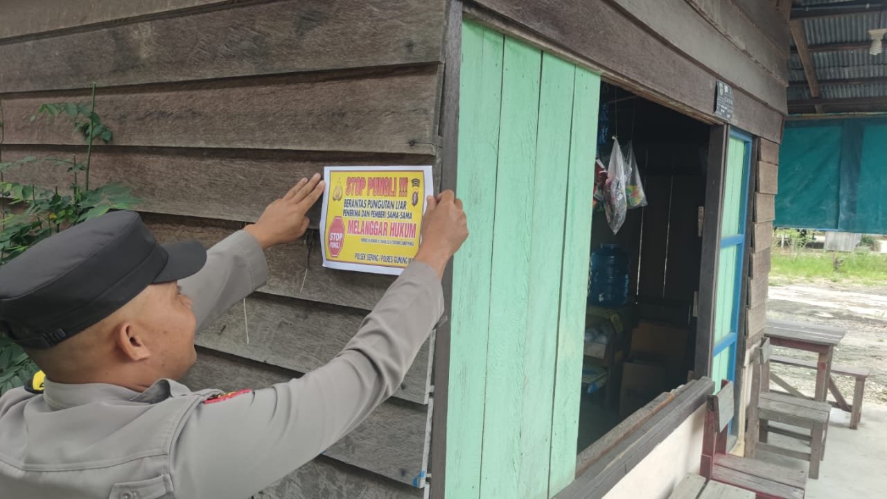 Polres Gunung Mas – Personel Polsek Kurun, Polda Kalteng, Gunung Mas, Kalimantan Tengah, mengedukasi kepada masyarakat setempat tentang bahaya pungutan liar. Langkah ini dilakukan sebagai upaya keras untuk memerangi praktik ilegal ini dan memberikan informasi kepada masyarakat mengenai hak-hak mereka serta konsekuensi hukum yang terkait dengan pungutan liar. Sabtu (5/7/25) sekira pukul 10.40 WIB.