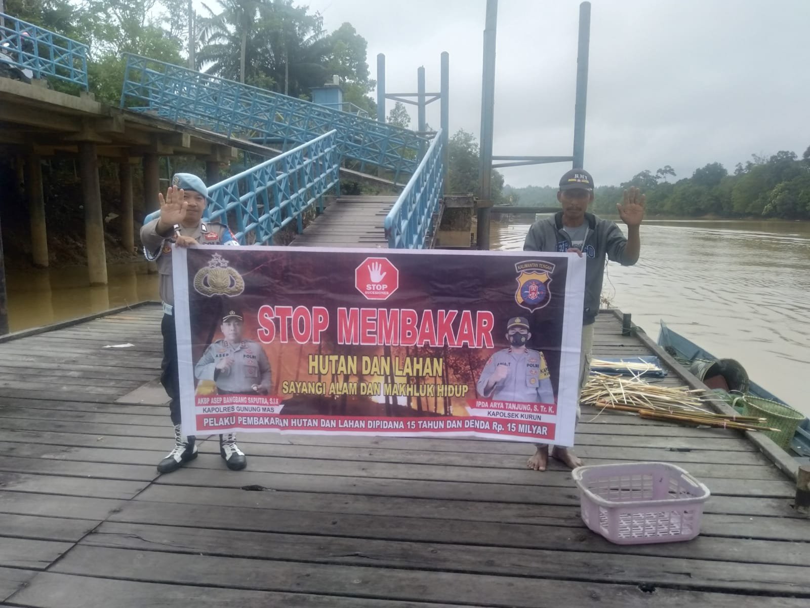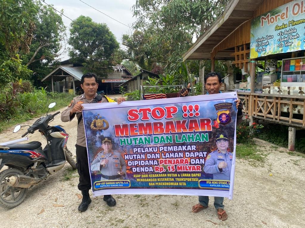 Polres Gunung Mas – Jajaran Polsek Kurun, Polres Gunung Mas (Gumas) melakukan patroli dan sosialisasi serta memberi imbauan kepada masyarakat tentang larangan dan bahaya membakar hutan dan lahan (Karhutla). Kamis, (14/9/2023) siang.