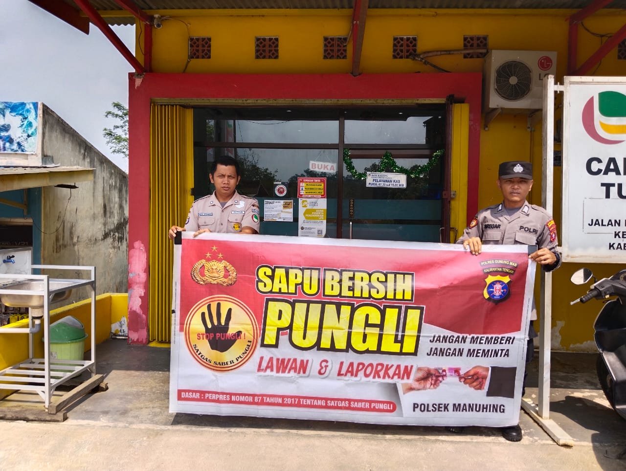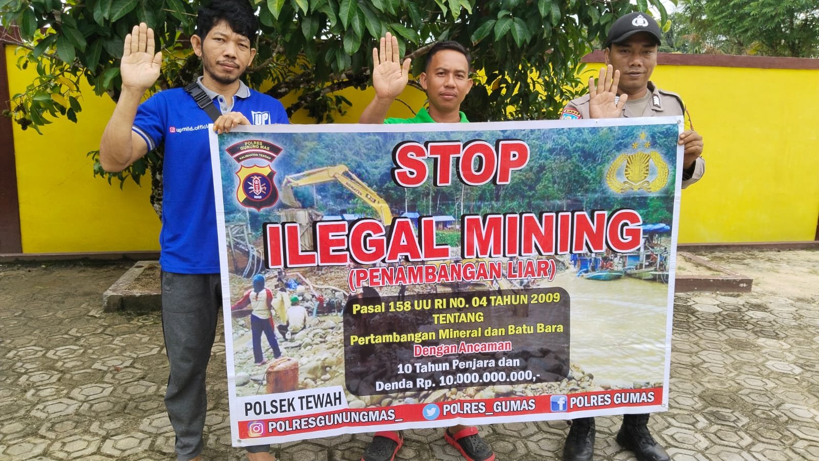 Kapolsek Kahut Ipda Supono mengatakan Personel Polsek Kahut membentangkan spanduk yang bertuliskan “ Stop Ilegal Mining serta sanksi pidana” Pasal 158 Undang Undang No.4 tahun 2009 Pidana Penjara 10 tahun dan denda 10 paling banyak 10 Milyar memberikan himbauan bersama-sama dalam menanggulangi Ilegal Mining.