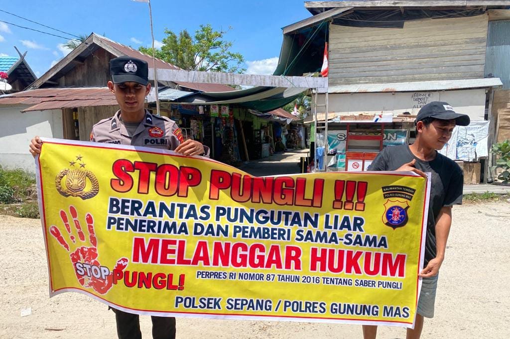 Kapolsek Sepang Ipda Neno Efendo mengatakan Personel Polsek Sepang membentangkan spanduk bertuliskan “ Stop Ilegal Mining serta sanksi pidana” Pasal 158 Undang Undang No.4 tahun 2009 Pidana Penjara 10 tahun dan denda 10 paling banyak 10 Milyar memberikan himbauan bersama-sama dalam menanggulangi Ilegal Mining.