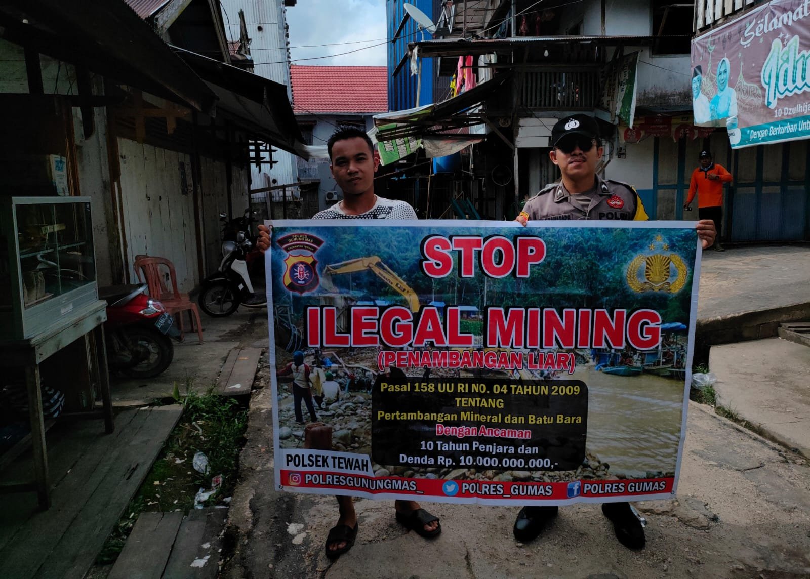 Kapolsek Tewah Ipda Teguh Triyono, S.H., mengatakan Personel Polsek Tewah membentangkan spanduk bertuliskan “ Stop Ilegal Mining serta sanksi pidana” Pasal 158 Undang Undang No.4 tahun 2009 Pidana Penjara 10 tahun dan denda 10 paling banyak 10 Milyar memberikan himbauan bersama-sama dalam menanggulangi Ilegal Mining.