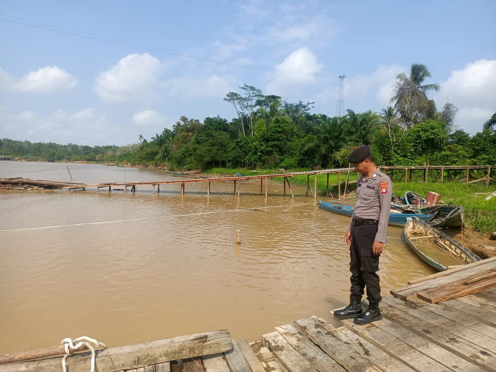 Antisipasi Banjir, Personil Polsek Kurun Monitoring Debit Air Sungai Kahayan