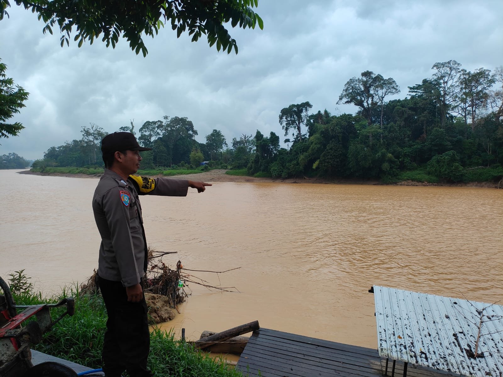Personel Polsek Tewah melaksanakan patroli pantau debit air sungai Kahayan guna mencegah terjadinya korban dampak dari bencana alam banjir dan memberi himbauan kepada masyarakat.