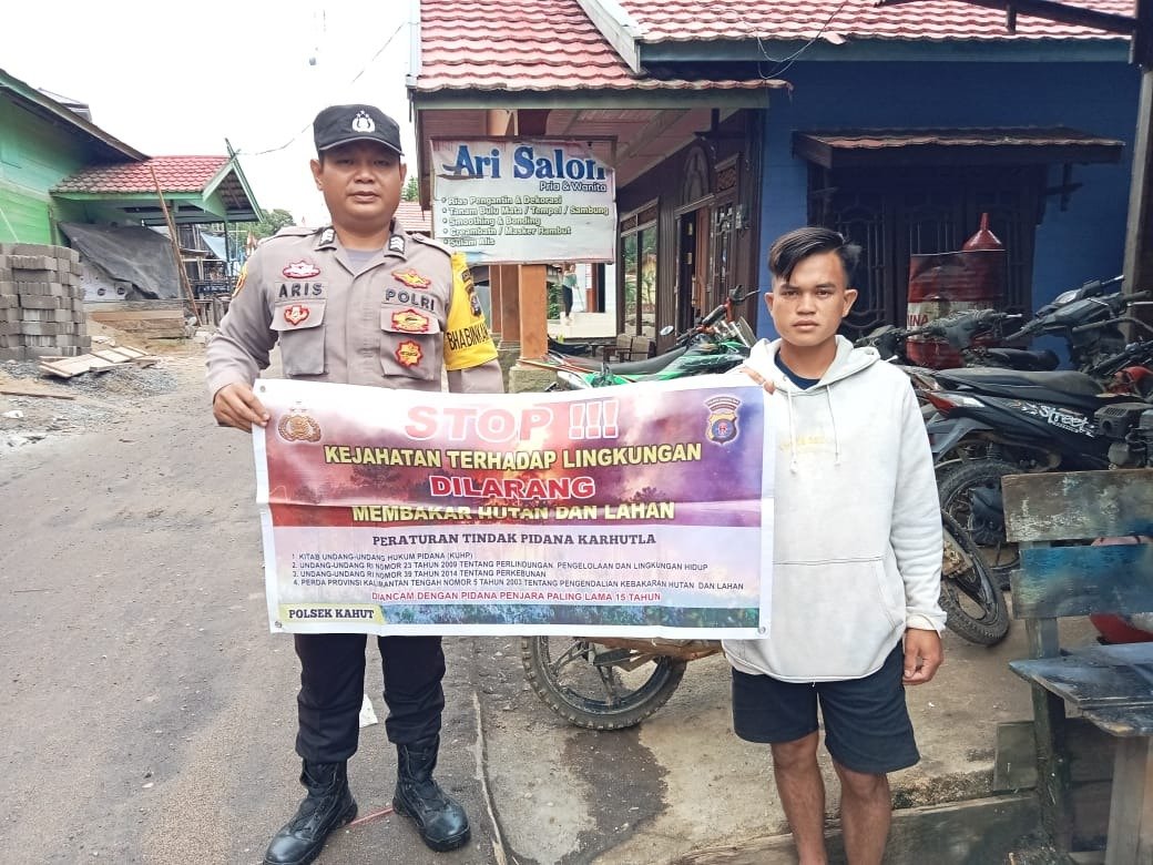 Polres Gunung Mas – Jajaran Polsek Kahayan Hulu Utara (Kahut) , Polres Gunung Mas, Polda Kalteng, gencar sosialisasi larangan kebakaran hutan dan lahan (Karhutla) di wilayah hukumnya. Minggu, (26/11/2023) Siang.