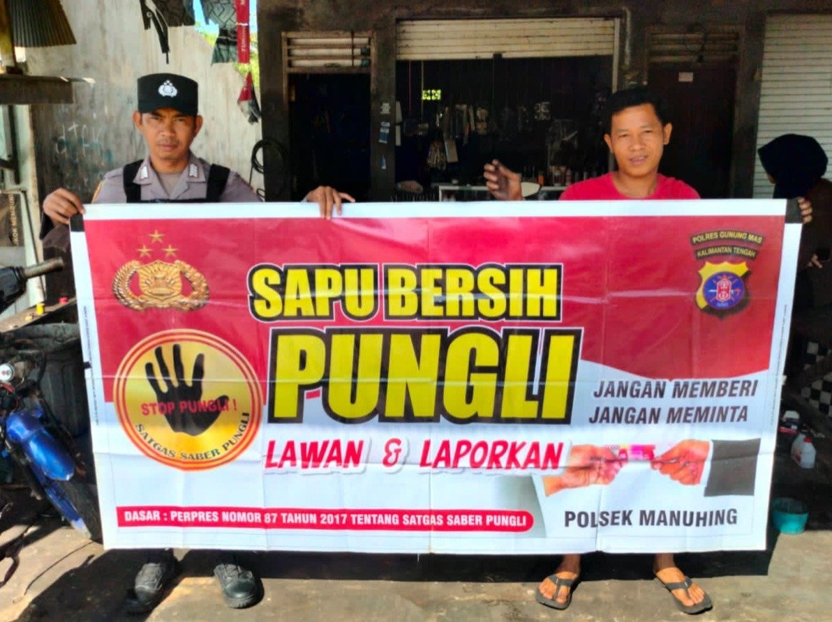 “Kami minta agar seluruh masyarakat segera menghubungi tim saber pungli jika melihat, mendengar atau mengetahui adanya tindakan pungutan liar ” Ujar Iptu Suwardi, S.H selaku Kapolsek Manuhing.