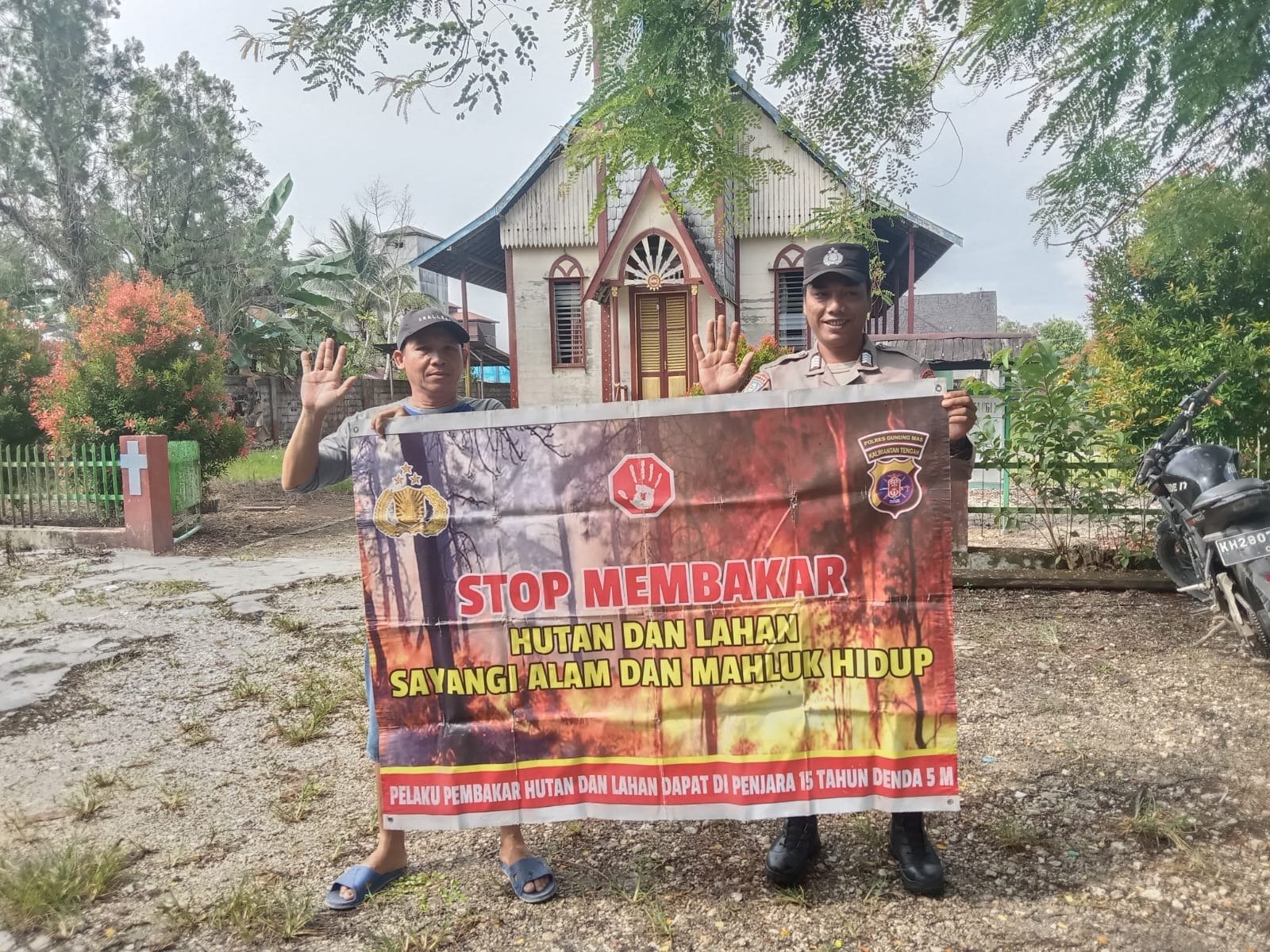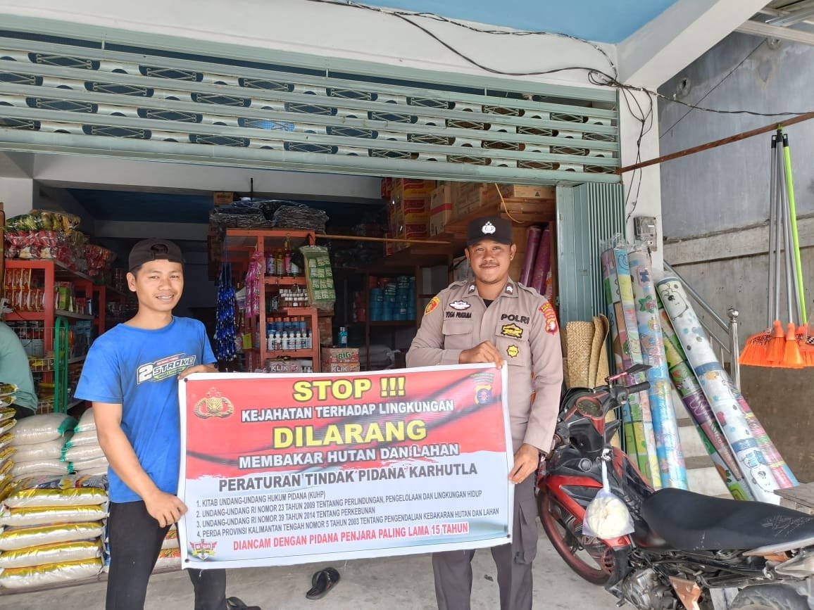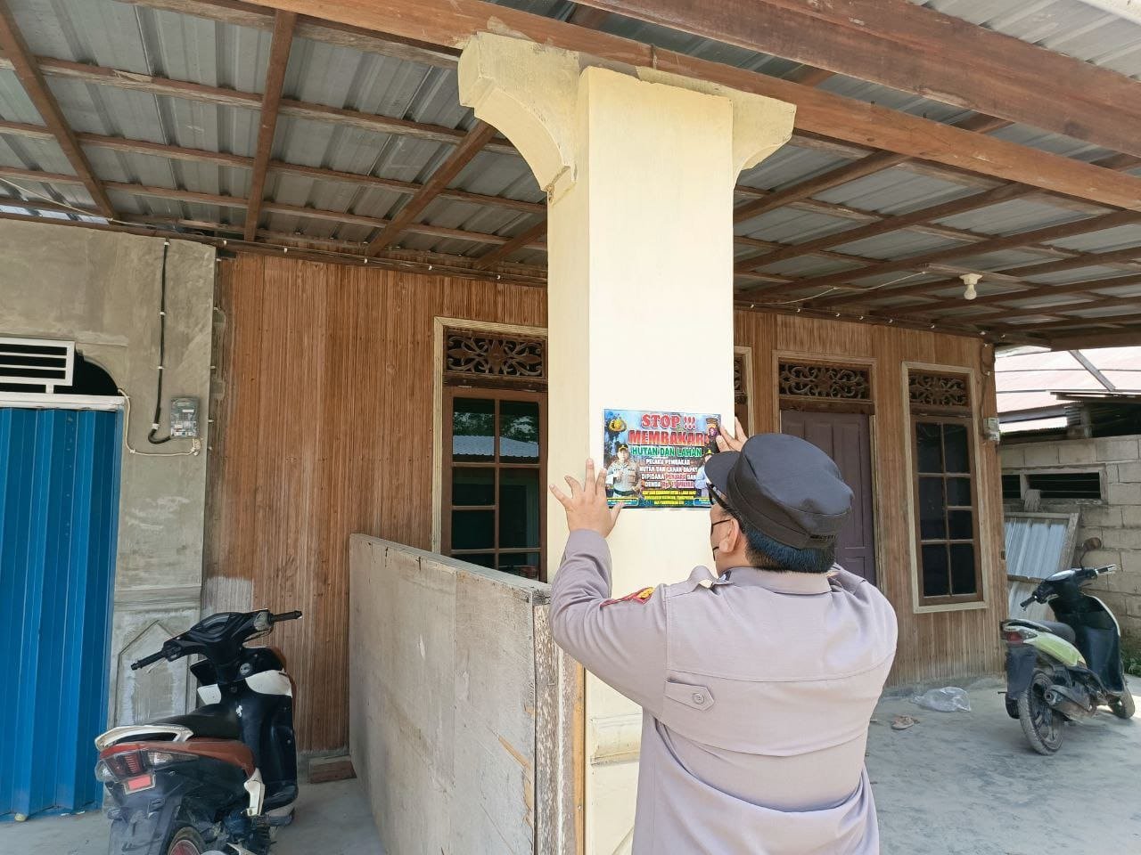 Polres Gunung Mas – Polsek Tewah jajaran Polres Gunung Mas (Gumas) Polda Kalteng dalam aksi mencegah Kebakaran Hutan dan lahan (Karhutla) memberi himbauan seperti menempel sticker/pamplet di rumah atau kios milik masyarakat tentang larangan dan bahaya membakar hutan dan lahan. Rabu, (22/11/2023) pukul 13.00 Wib.