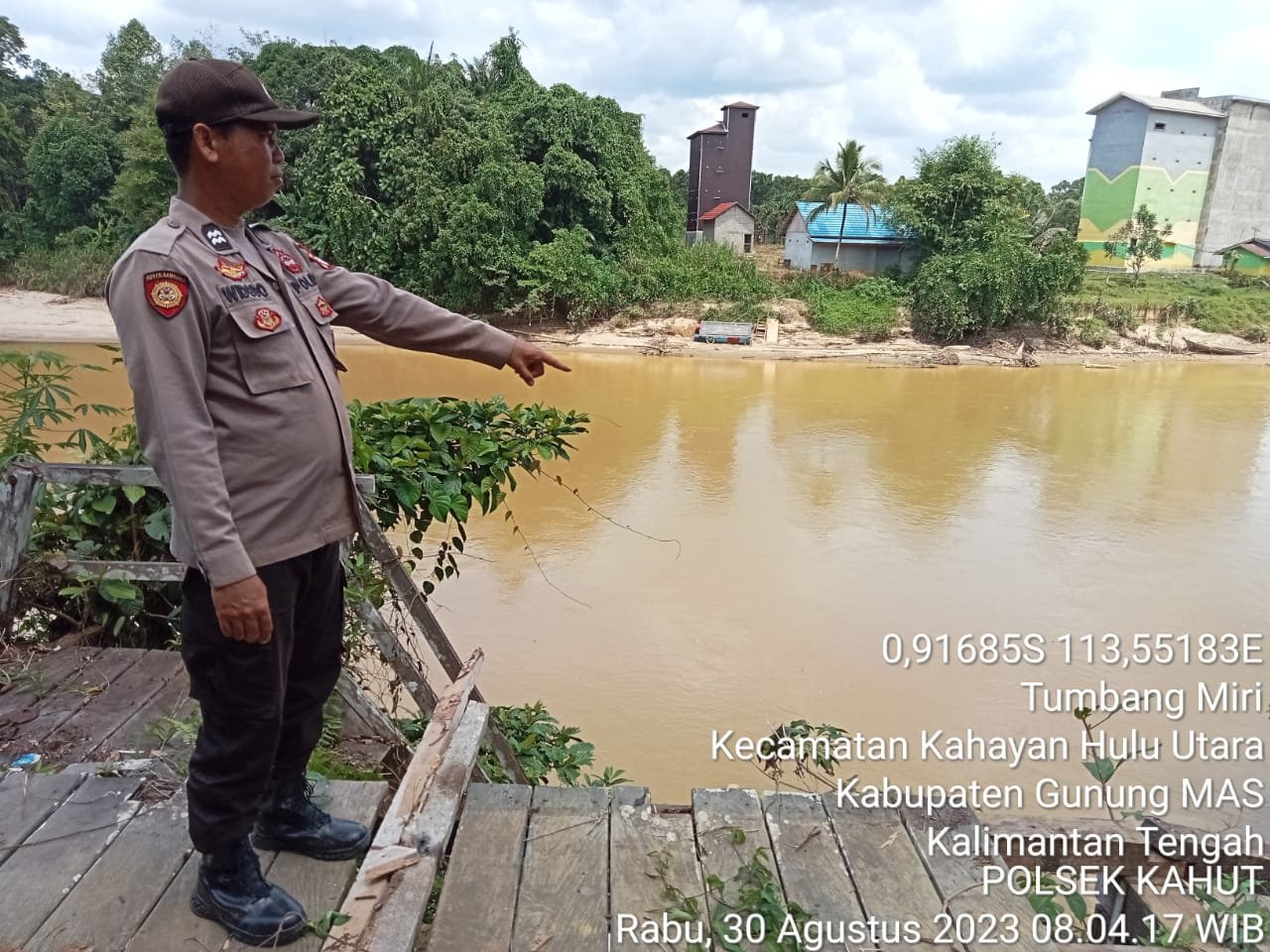 Personel Polsek Kahut melaksanakan patroli pantau debit air sungai Kahayan guna mencegah terjadinya korban dampak dari bencana alam banjir dan memberi himbauan kepada masyarakat.