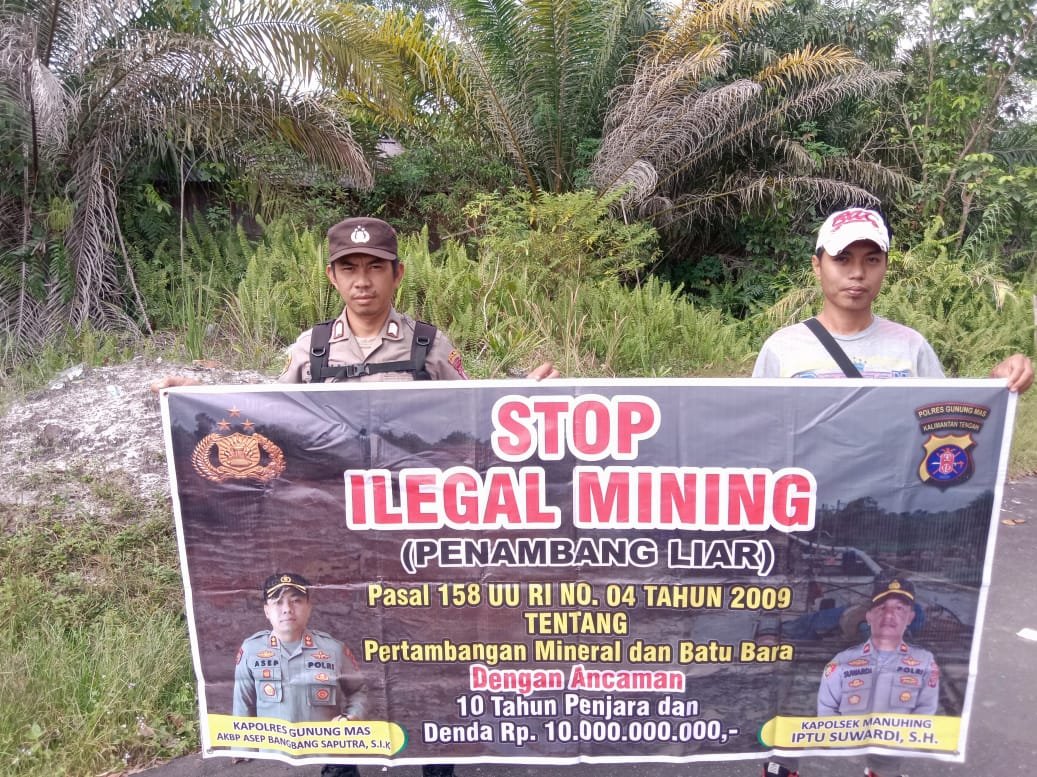 Polres Gunung Mas – Polsek Manuhing jajaran Polres Gunung Mas (Gumas), Polda Kalteng kembali dan terus gencar melaksanakan sosialisasikan tentang Penambangan  Tanpa ijin (Illegal Mining) serta waspada terhadap berita hoax.senin (28/08/2023).